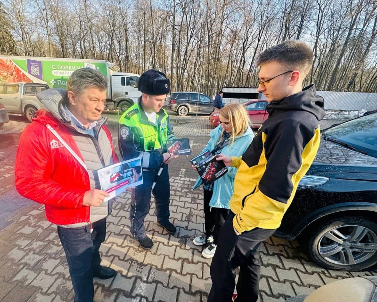 На автомобильных стоянках вблизи торгово-развлекательных центров сотрудники Госавтоинспекции провели профилактические беседы в рамках социального раунда «Один щелчок спасает жизнь».