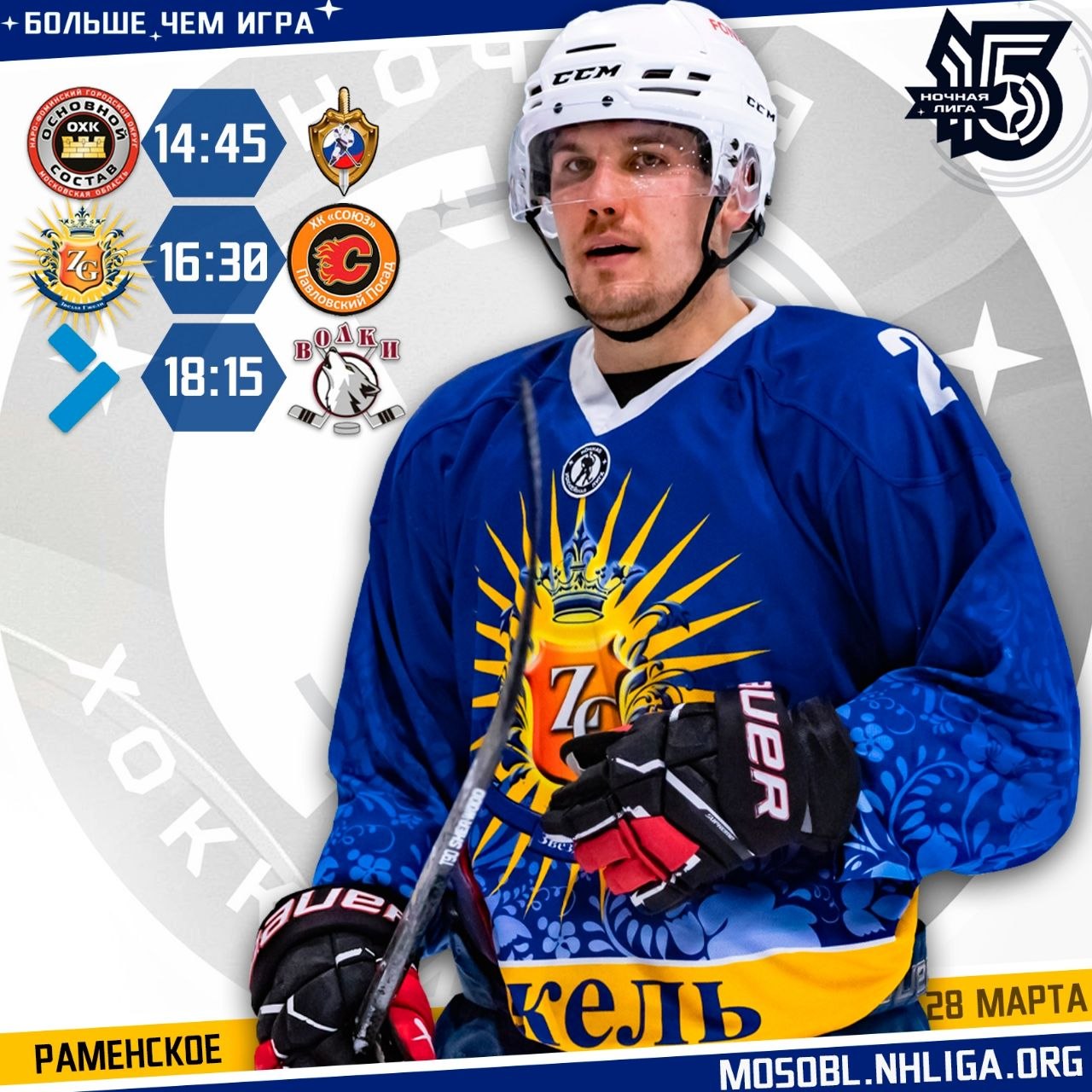 Сегодня, 28 марта, в Раменском состоится решающий матч Ночной хоккейной лиги. Жуковский клуб «Альфа-Патриот» встретится с соперником - командой «Основной состав» из Селятино (Наро-Фоминский г.о.) в финале за первое место.