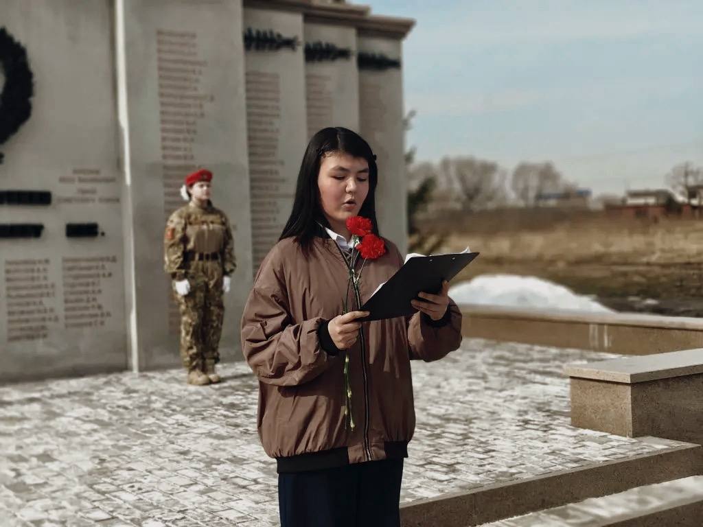 Ребята провели торжественную церемонию. Затем наступила минута тишины — та самая, что говорит громче любых слов. К мемориалу легли живые цветы как символ нашей вечной признательности.