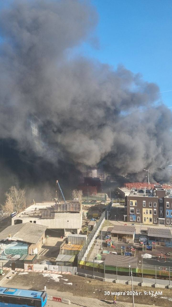 Мощный пожар разгорелся в районе бывшего завода ЗИЛ в Москве