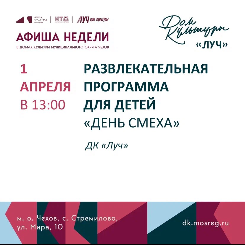 Афиша недели ДК «Луч» м.о. Чехов