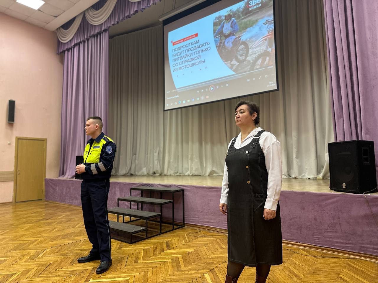 В Химках автоинспекторы совместно с представителями РОО «Союз безопасности дорожного движения» обсудили с подростками правила управления СИМ и питбайками.