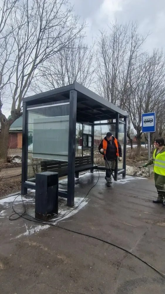Напомним, всего на балансе находится 151 муниципальный остановочный павильон. В настоящее время остановки в муниципалитете очищают от талого снега, пыли и грязи.