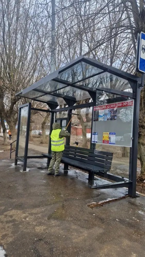 В Богородском округе начали приводить в порядок остановочные комплексы. Подтёки, мусор, песок – вот что оставила после себя нынешняя зима.