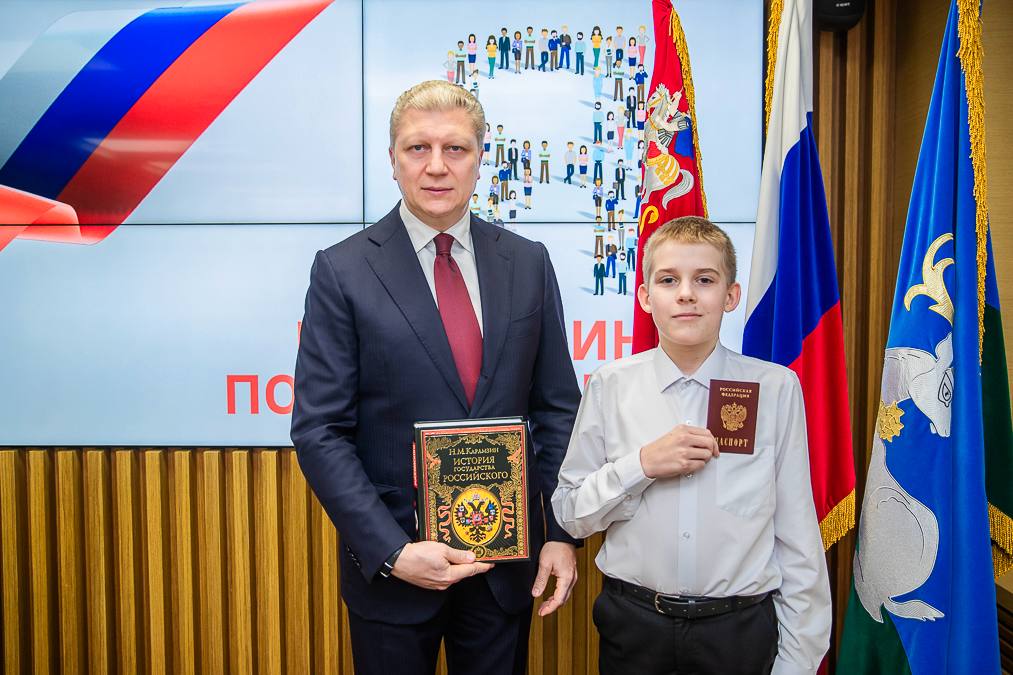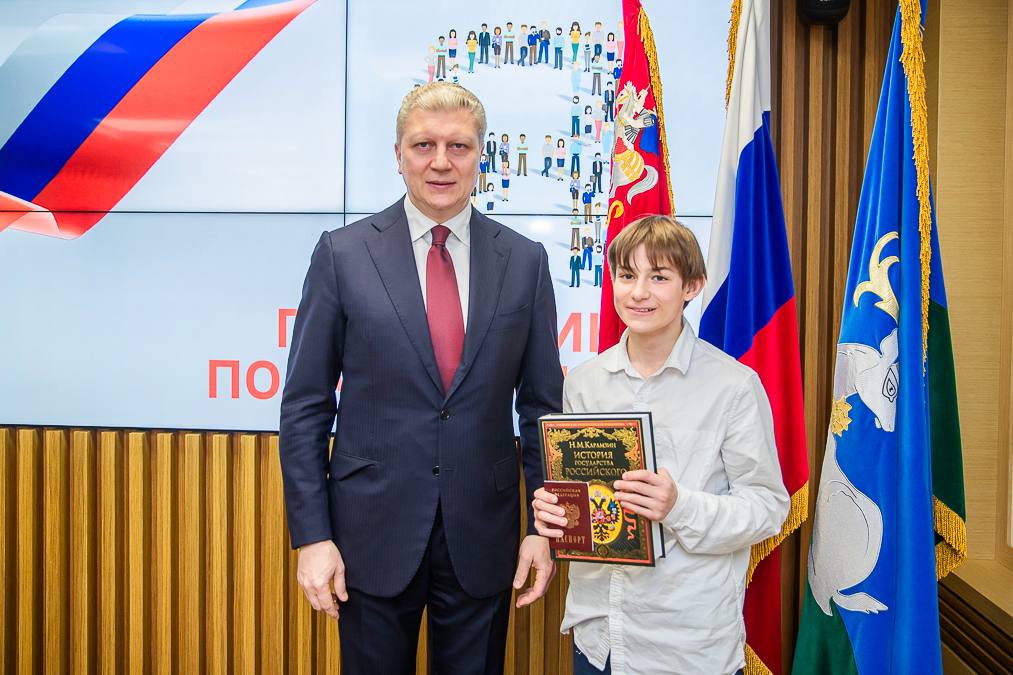 По сложившейся традиции вручили ребятам по экземпляру Конституции России, а также подарочное издание «Истории государства Российского» Николая Карамзина — настоящая любовь к Родине начинается с искреннего интереса к её истории.