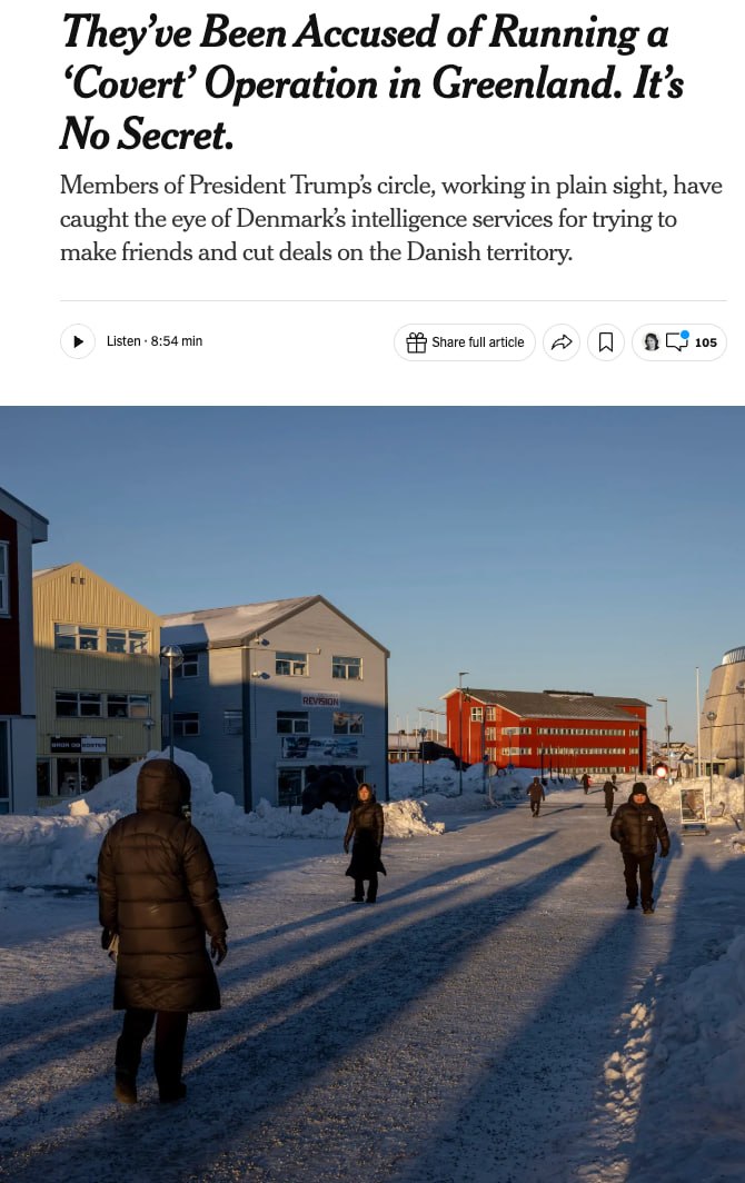 Однако США спокойно продолжают свою линию: Трамп отказался от угроз силового захвата, но его союзники действуют куда эффективнее — через бизнес и дружбу.