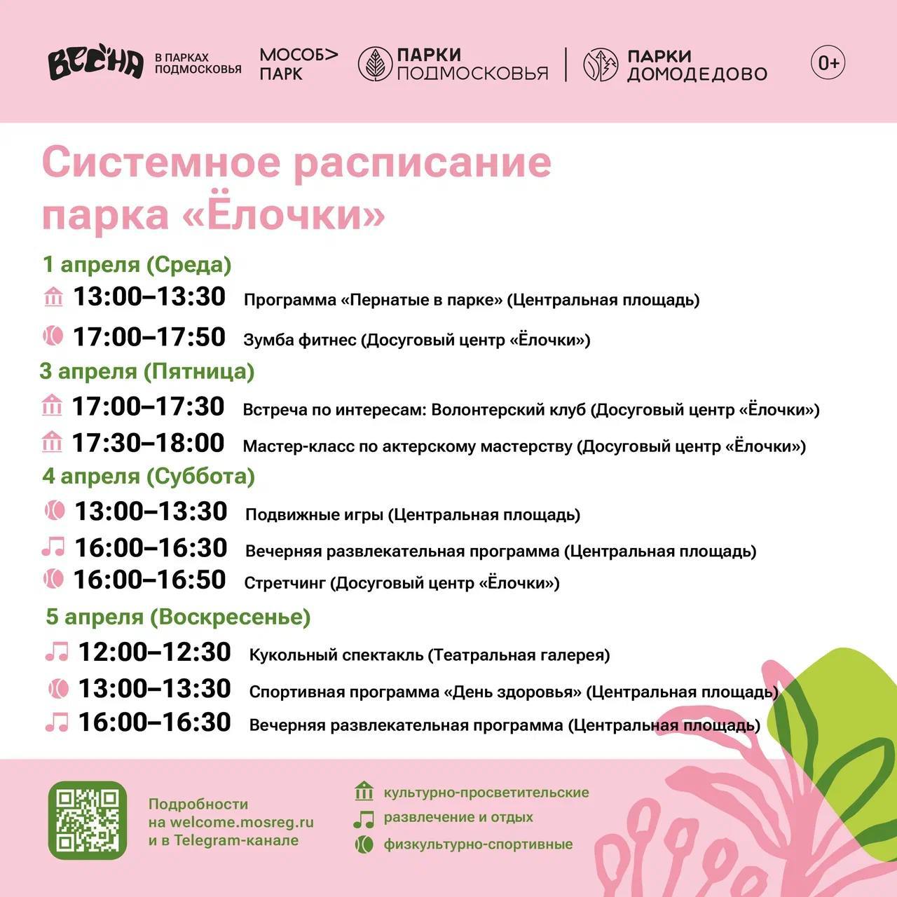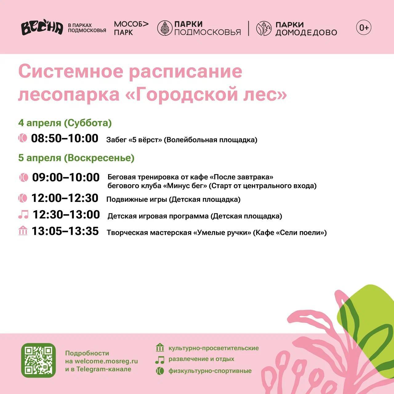 Солнышко светит, птички поют, а мы делимся с вами системным расписанием парков Домодедово