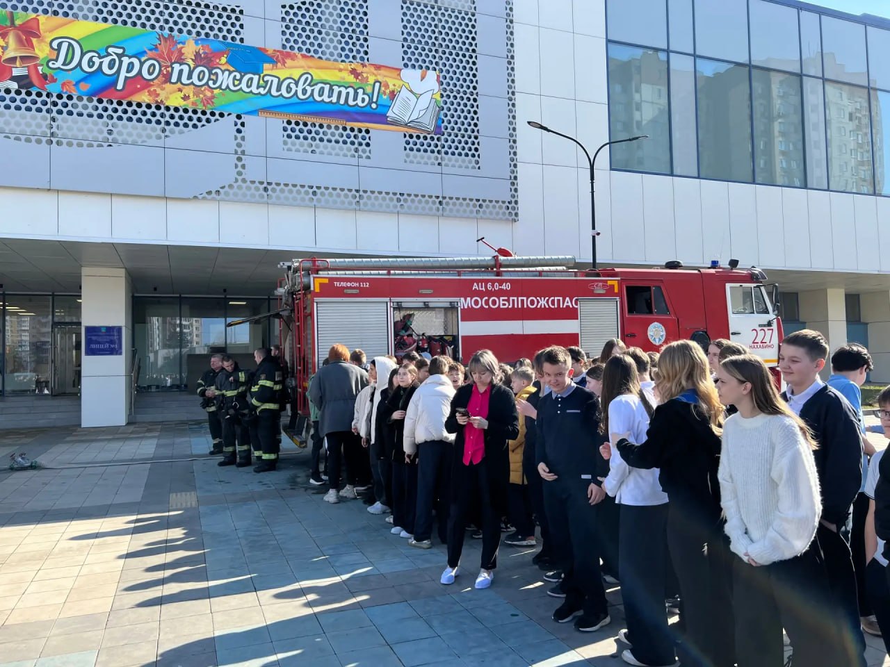 На базе Лицея № 1 в Нахабино прошла учебная тренировка по эвакуации при чрезвычайной ситуации. Мероприятие прошло с участием пожарного подразделения «Мособлпожспас».