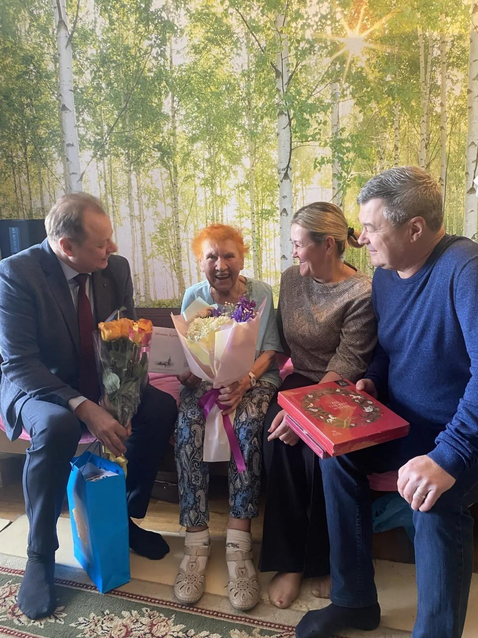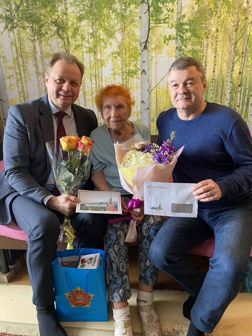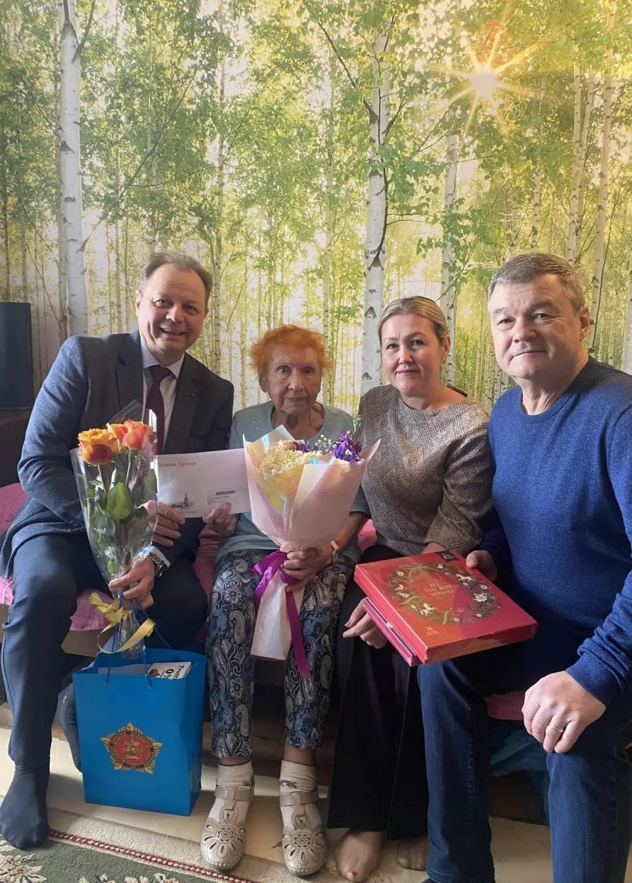 В этот особенный день к имениннице, которая по-прежнему жизнерадостна и открыта, приехали сотрудники социальной защиты, депутат Совета депутатов Алексей Иванов и начальник службы социальной политики администрации округа Сергей Барабанов.