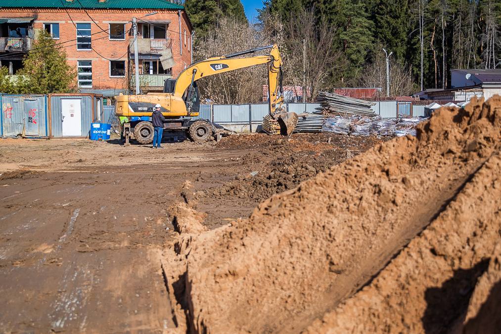 Учреждение рассчитано на 220 посещений в смену. Подрядчик заканчивает вынос инженерных сетей из пятна застройки, обустроил временный водопровод для мойки колёс техники и оформляет разрешение на вывоз грунта.