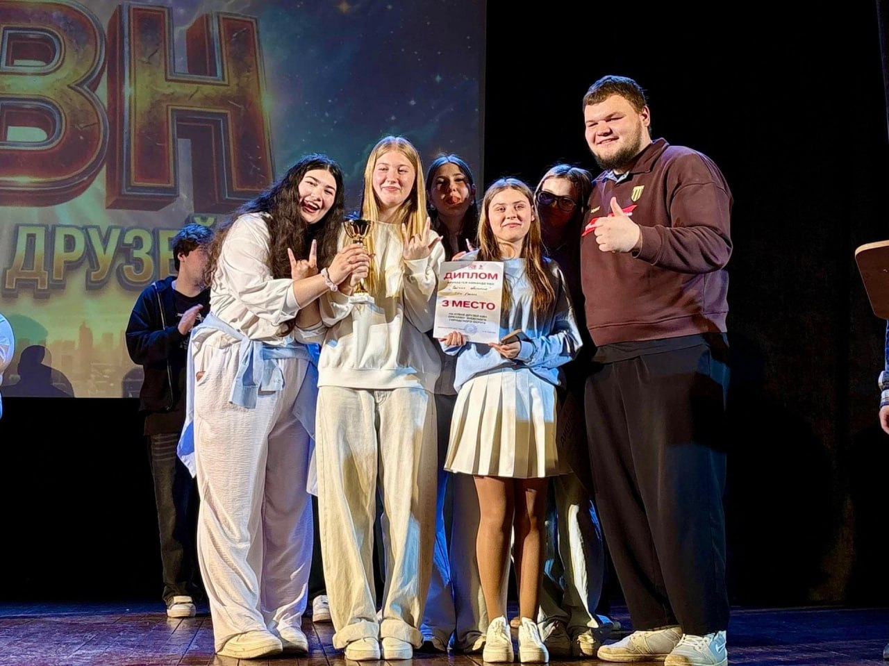 Ребята из Раменского округа ворвались в игру. Их «Приветствие» и «Разминка» покорили жюри своим артистизмом и остроумием. Особо отметим, что в составе жюри был и руководитель КВН ГГУ Никита Фонин. По итогам напряженной борьбы наши ребята заняли почетное 3-е место! Эта бронза – отличное подтверждение таланта команды и заявка на будущие победы.