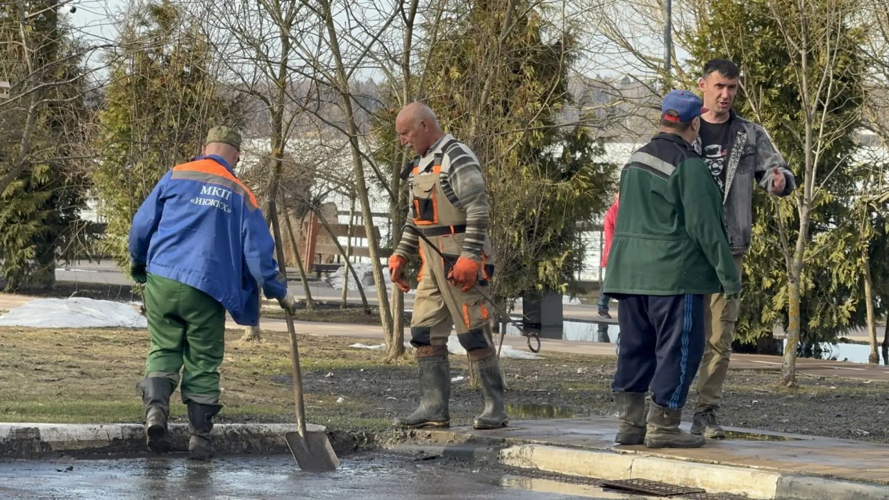 На месте присутствуют глава округа Константин Михальков, помощник Солнечногорского городского прокурора Зобнин Кирилл Васильевич, заместители главы - Виталий Тушинов, Максим Барков и Эдуард Машковцев, представители МосАВС, специалисты ИКЖКХ, сотрудники Управления ЖКХ, директор парка.