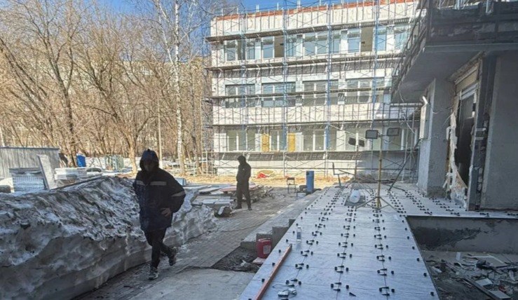 На сегодняшний день ведутся фасадные и кровельные работы, продолжаются отделочные работы, монтаж инженерных коммуникаций. Укладка керамогранитной плитки входной группы и пандуса