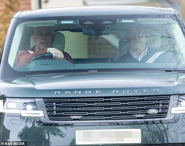Экс-принца запечатлели за рулем Range Rover во время поездки по поместью Сандрингем в Норфолке — он выглядел подавленным. Рядом с Эндрю сидит его телохранитель.