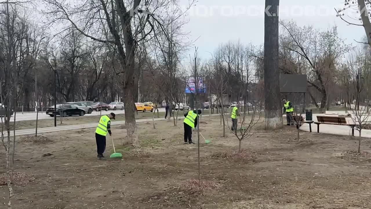 Подметальноуборочные вакуумные машины тщательно очищают дорожки в парках. Одновременно рабочие прогребают газон и моют остановки.