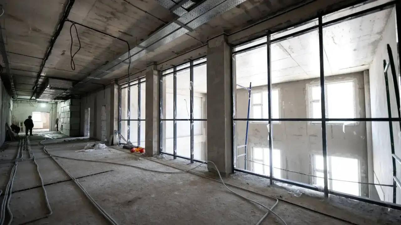 В настоящее время на объекте ведутся электромонтажные работы, монтируются слаботочные системы, осуществляется прокладка наружных инженерных сетей, производится благоустройство территории, выполняются работы по отделке фасада здания.