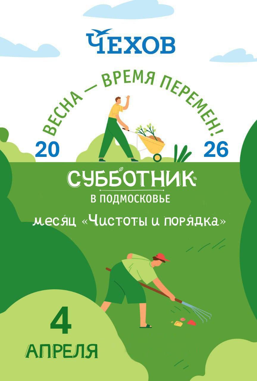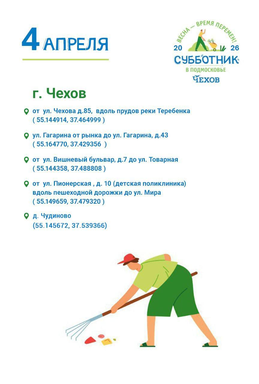 Приглашаю вас принять участие в общегородском субботнике, который состоится 4 апреля в 10:00.