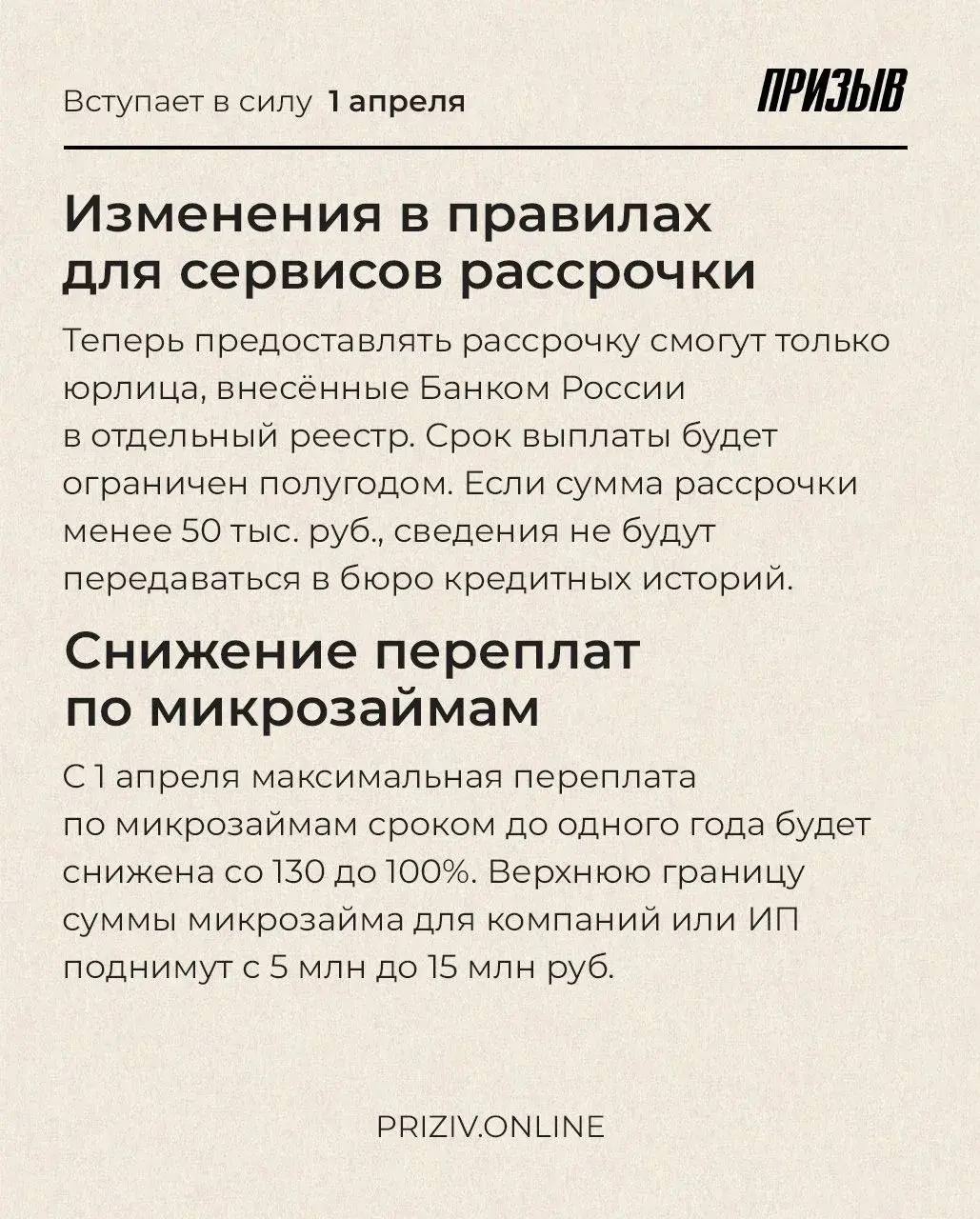 Рассрочка с новыми правилами