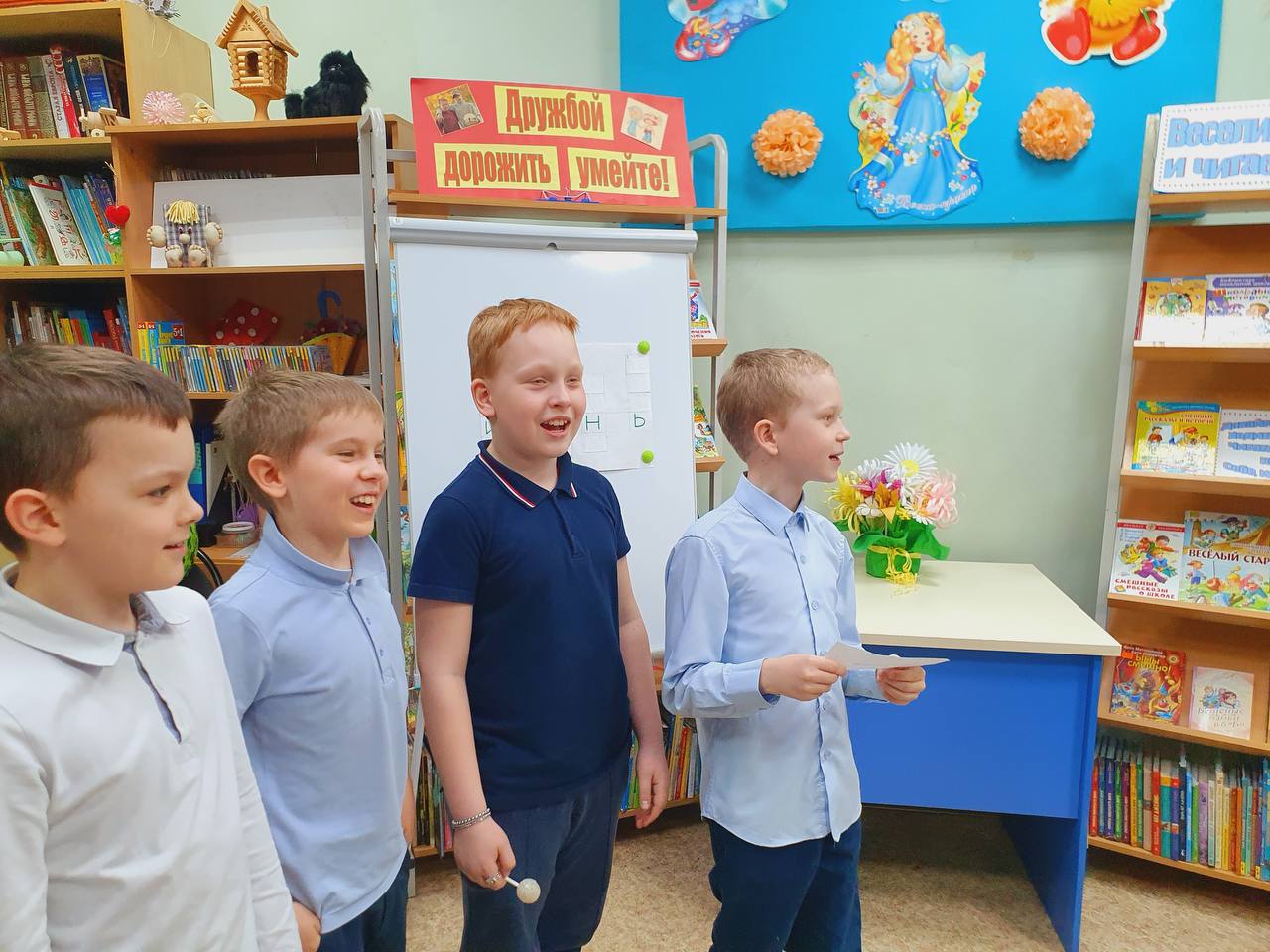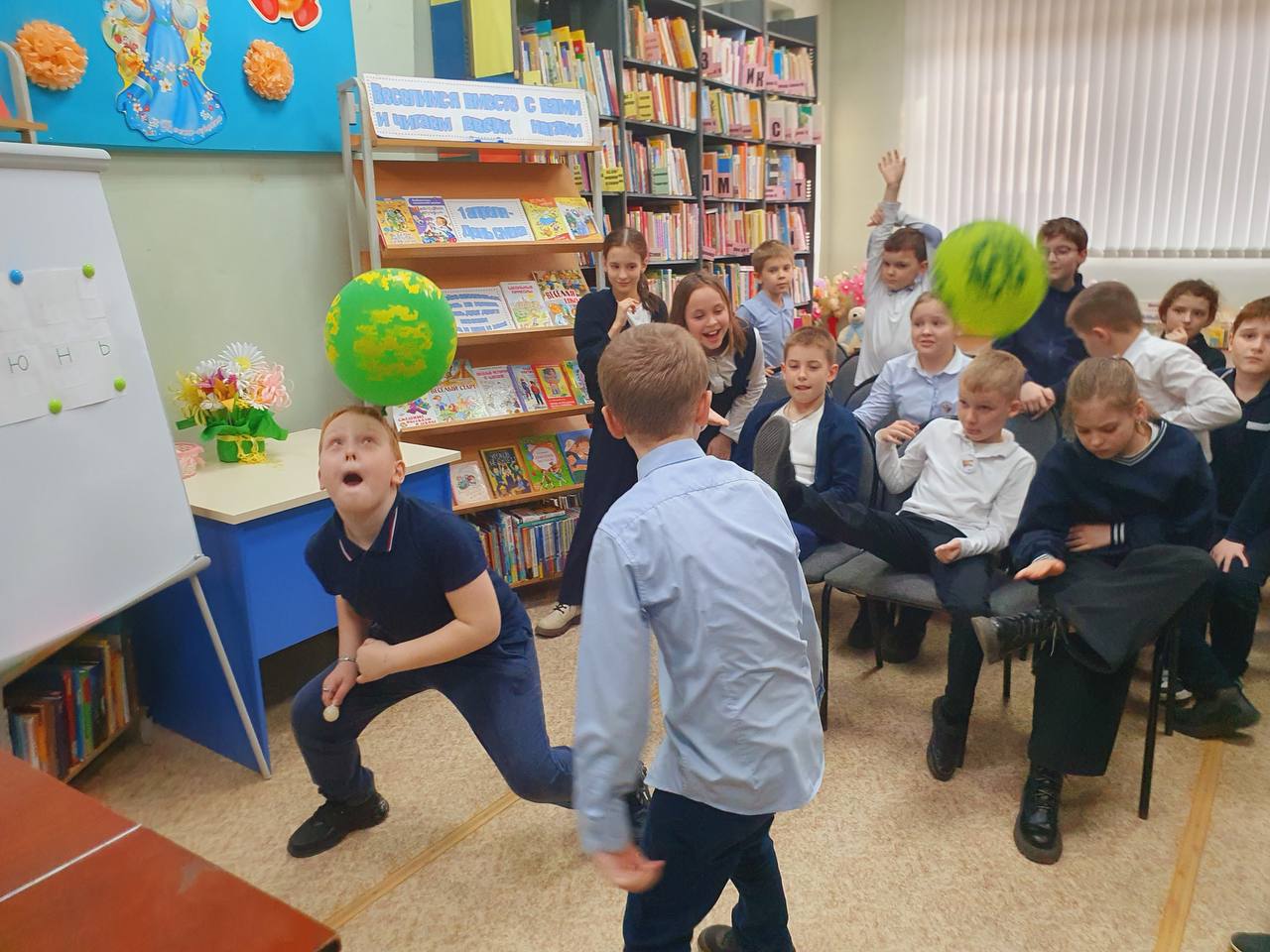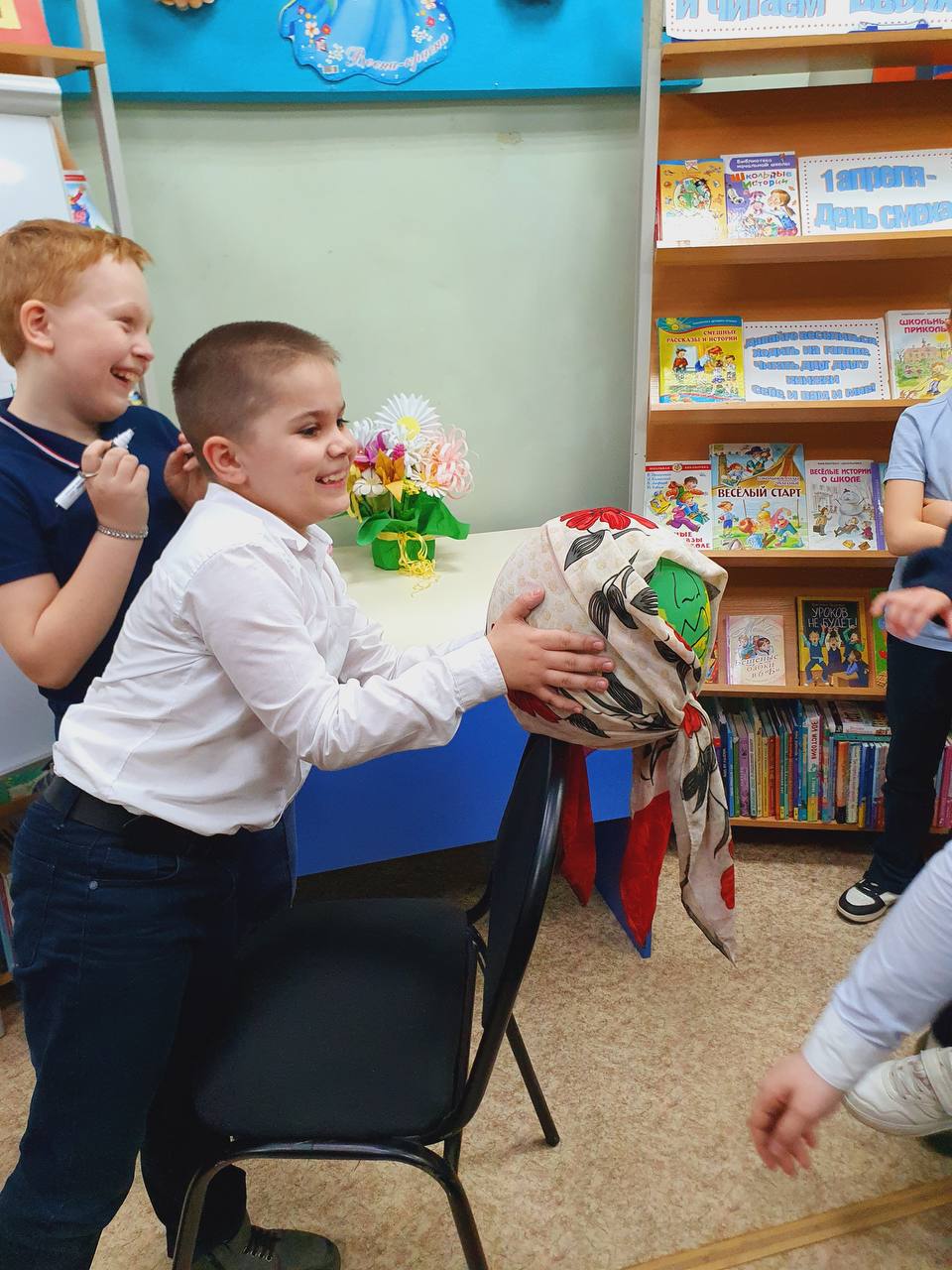 Час весёлых затей «Веселимся вместе с вами и читаем вверх ногами» прошёл в Городской библиотеке №2 1 апреля, в рамках Недели детской книги.