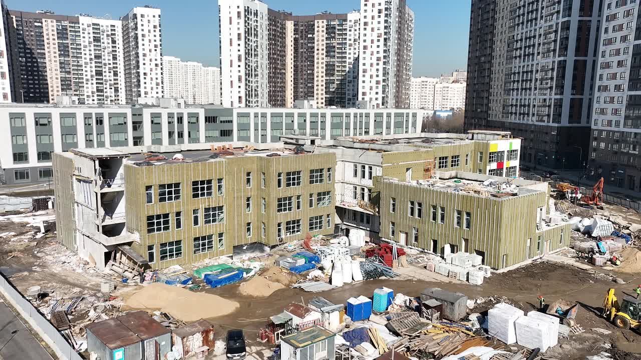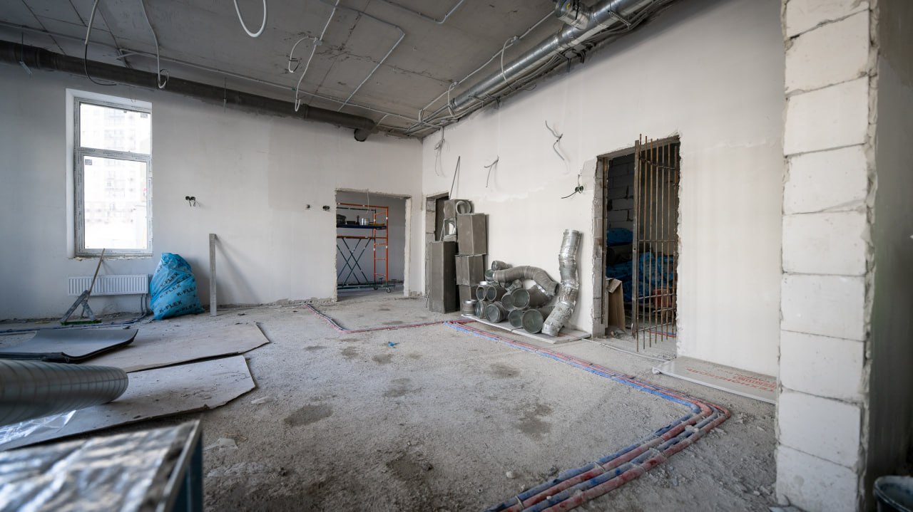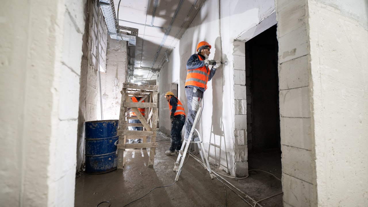 Подрядчик приступил к устройству фасада, прокладывает инженерные сети, возводит внутренние стены.