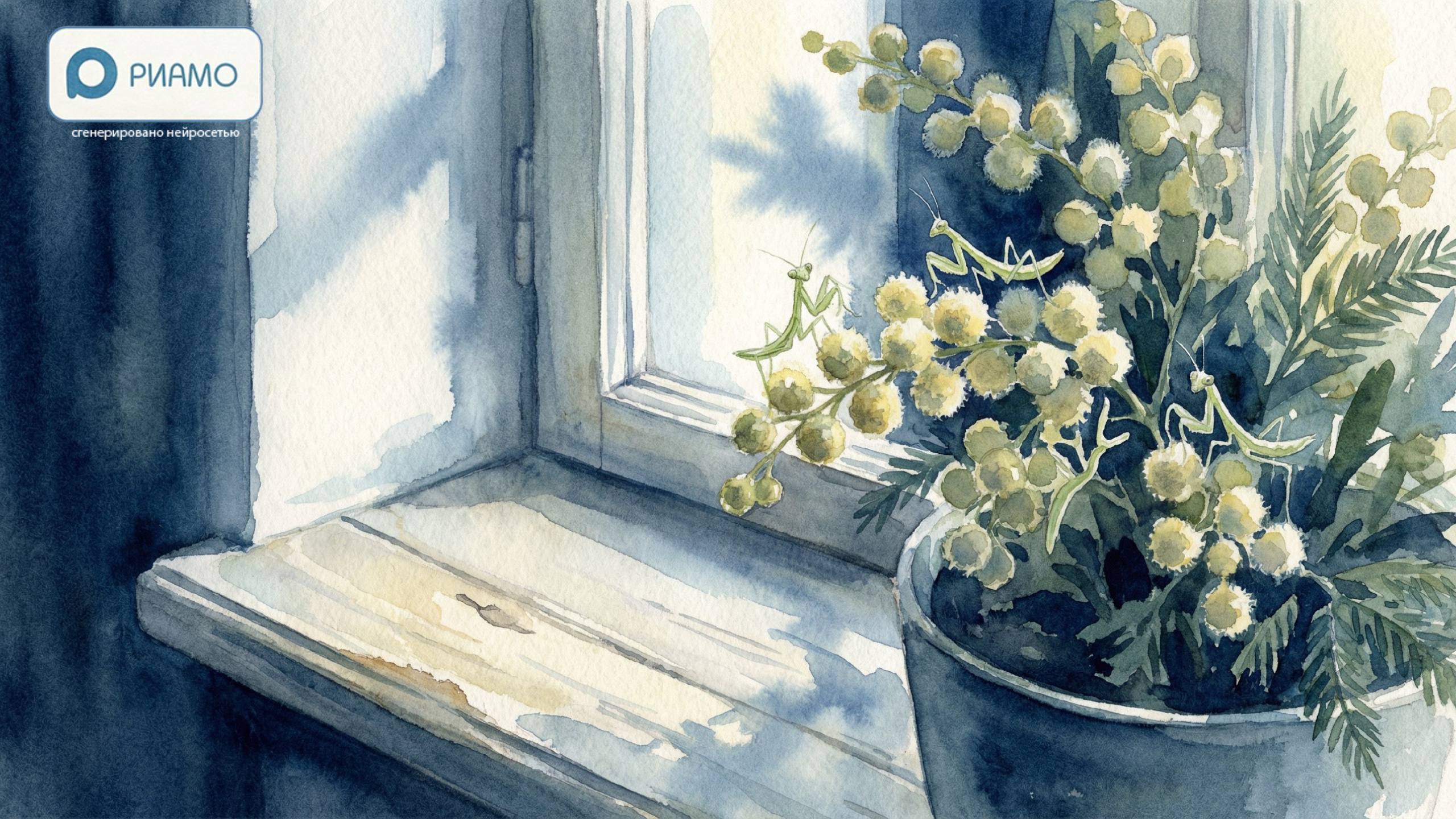 Из букета мимоз в доме вылупились богомолы