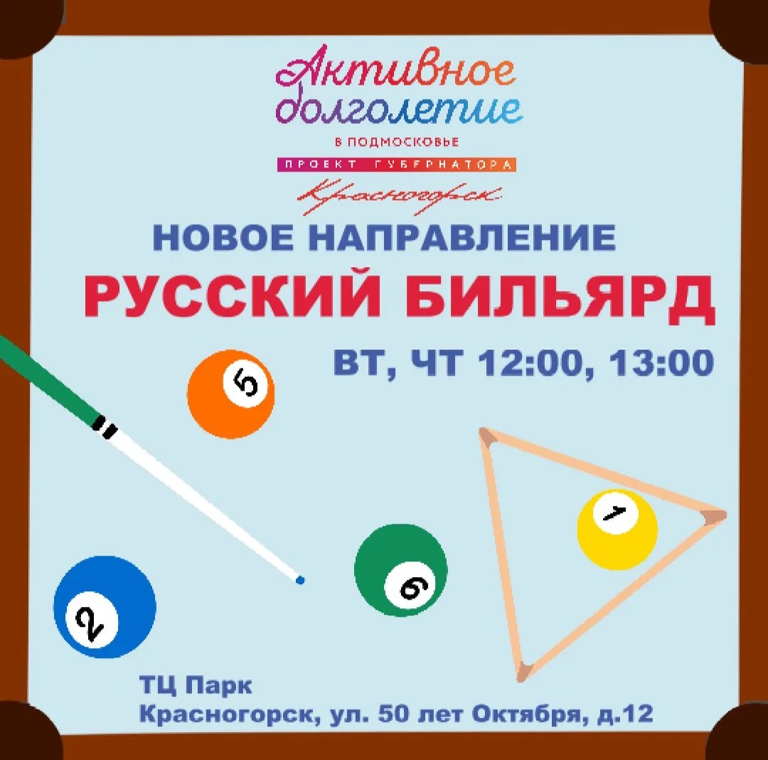 В центре «Активное долголетие», действующем на территории городского округа Красногорск, стартует новое досуговое направление для мужчин - занятия по игре в русский бильярд.