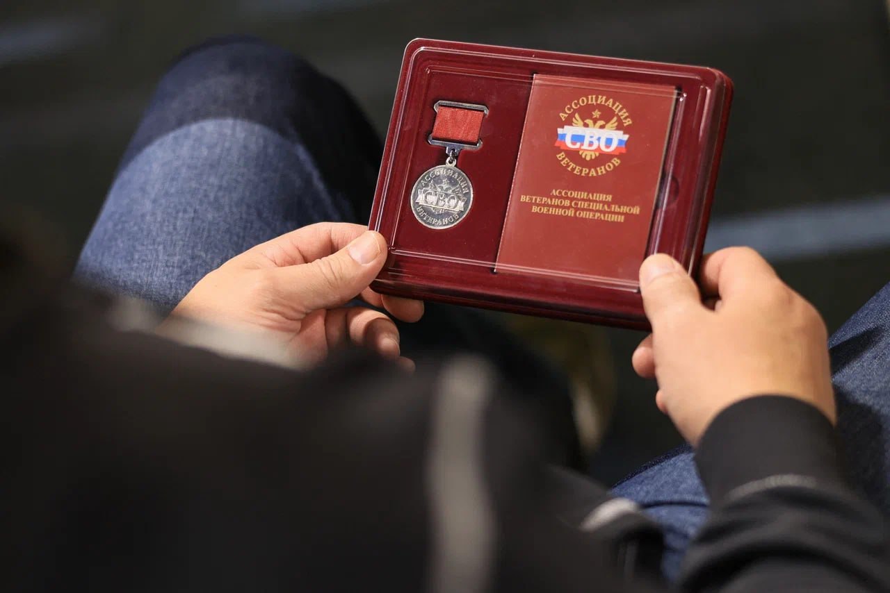 В завершении встречи вручил нашим защитникам 8 новых удостоверений королёвской Ассоциации ветеранов СВО и 3 медали «За участие в СВО».