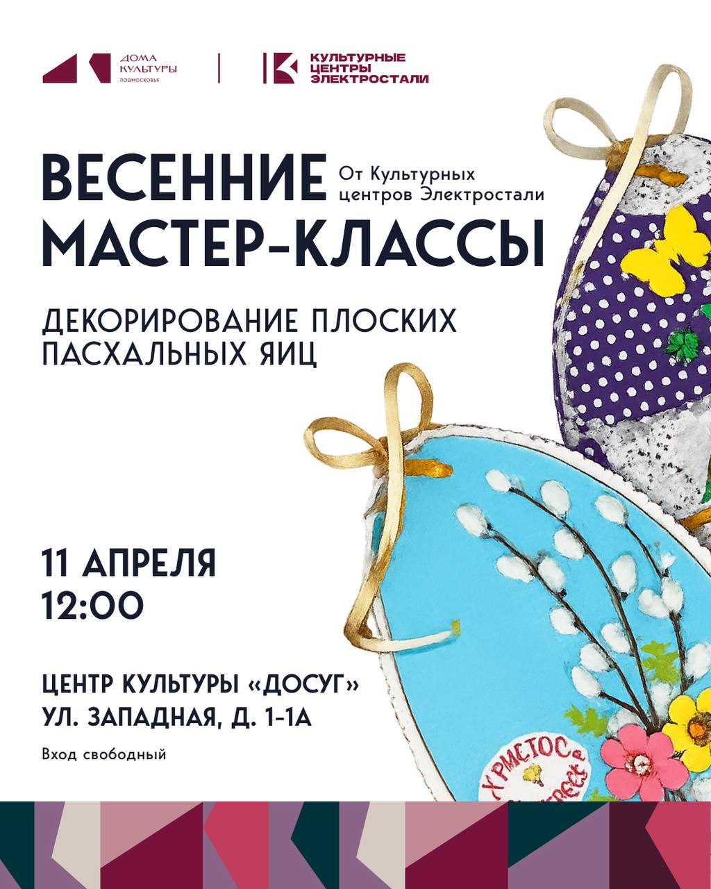 11 апреля состоится мастер-класс по декорированию плоских пасхальных яиц.