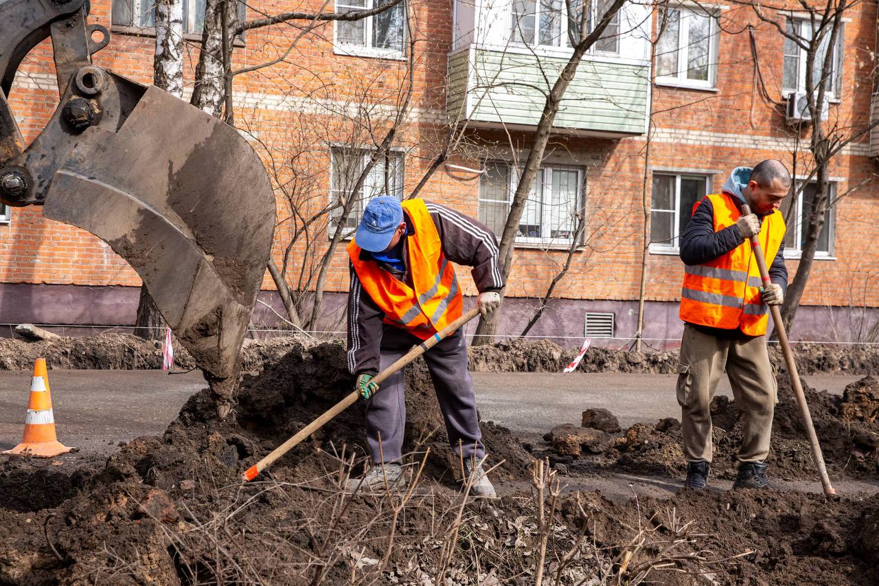 Один из объектов, где работы уже идут, — Южный переулок в микрорайоне Климовск. Там демонтируют старый и устанавливают новый бортовой камень. Весной это особенно важно: после зимы многие бордюры проседают или разрушаются.