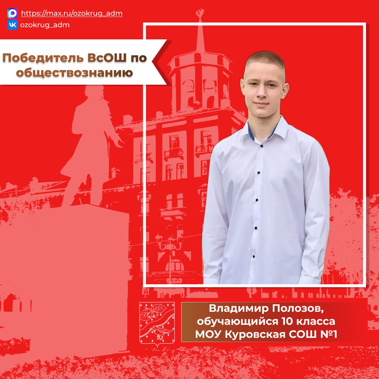 Владимир Полозов, обучающийся 10 класса МОУ Куровская СОШ №1