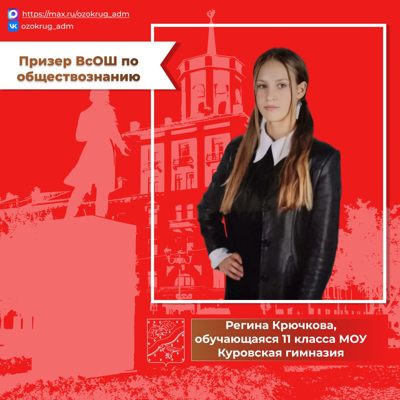 Регина Крючкова, обучающаяся 11 класса МОУ Куровская гимназия