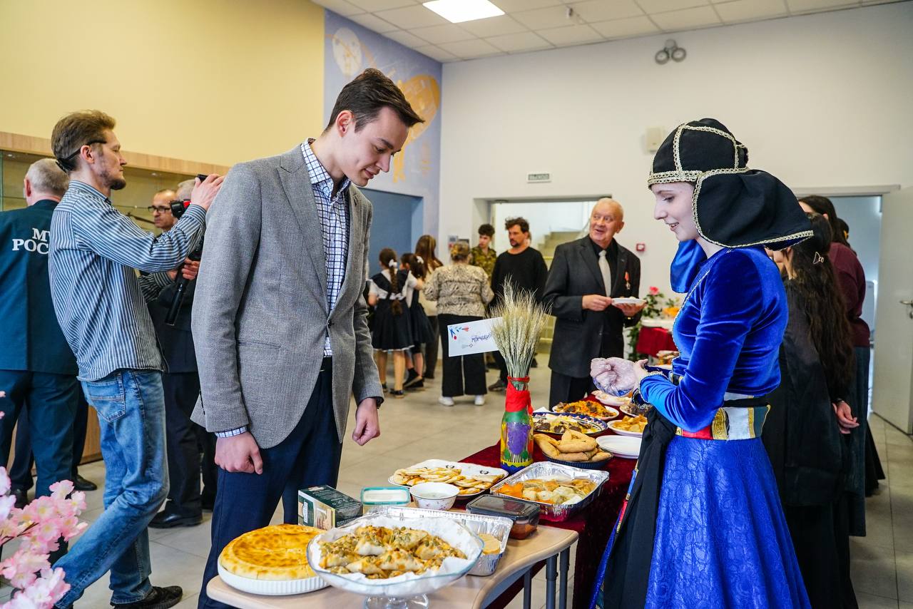 * Заключительный день фестиваля открылся ярмаркой «Кухни народов России». Ученики и родители представили национальные блюда. Гости могли не только попробовать угощения, но и сделать пожертвования — все собранные средства направят на закупку необходимого для бойцов. Посылку доставят организаторы гуманитарных поездок в зону СВО — представители волонтёрского движения МБУ «Химспас».