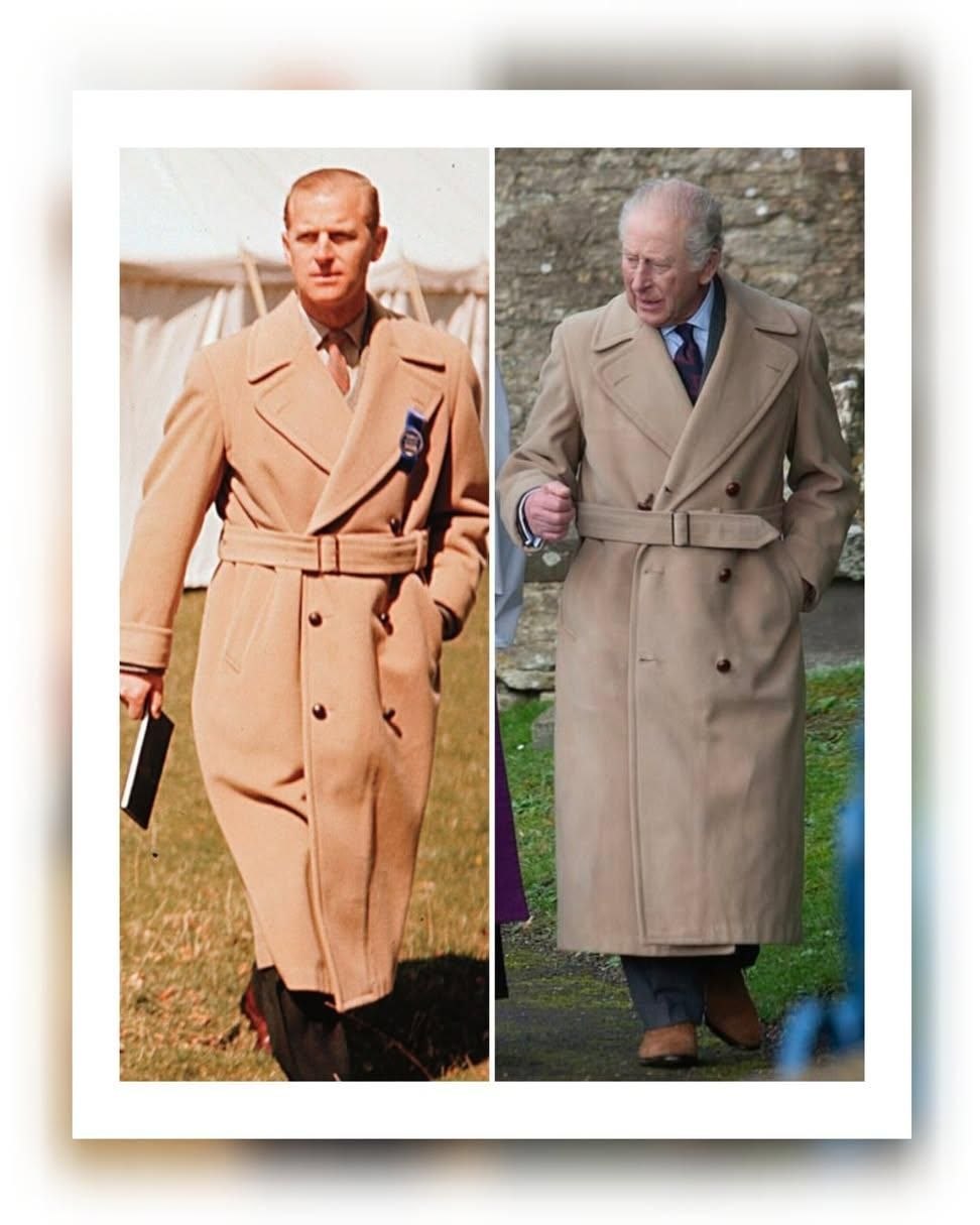 Не только традиции передаются по наследству в британской королевской семье. Недавно Карла III заметили в пальто, которое он, судя по всему, донашивает за своим отцом, принцем Филиппом. Предмету гардероба, между прочим, уже не менее шести десятков лет.