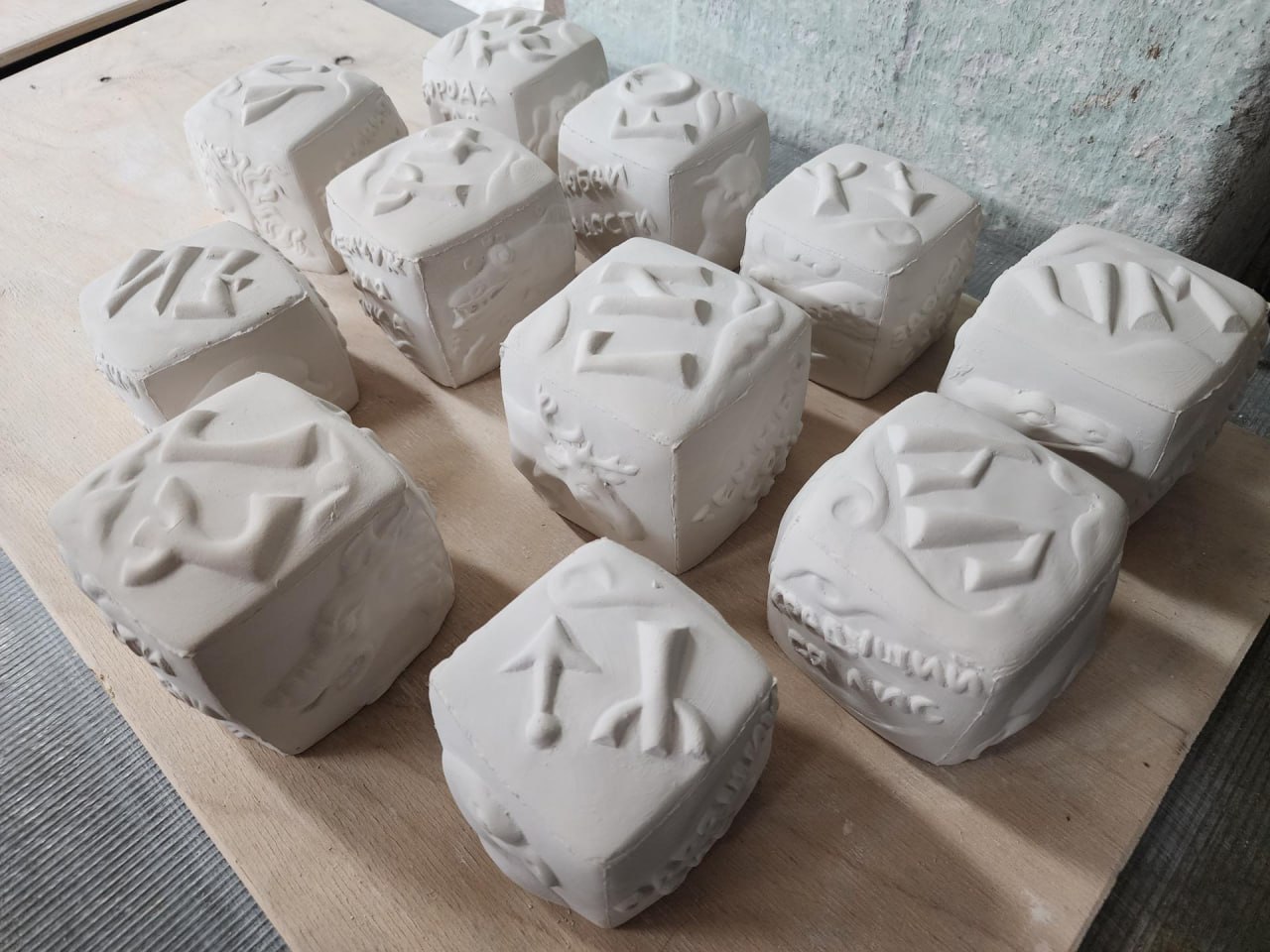 Форма куба выбрана не случайно: она позволяет разместить больше символов и деталей, чем классическая скульптура.
