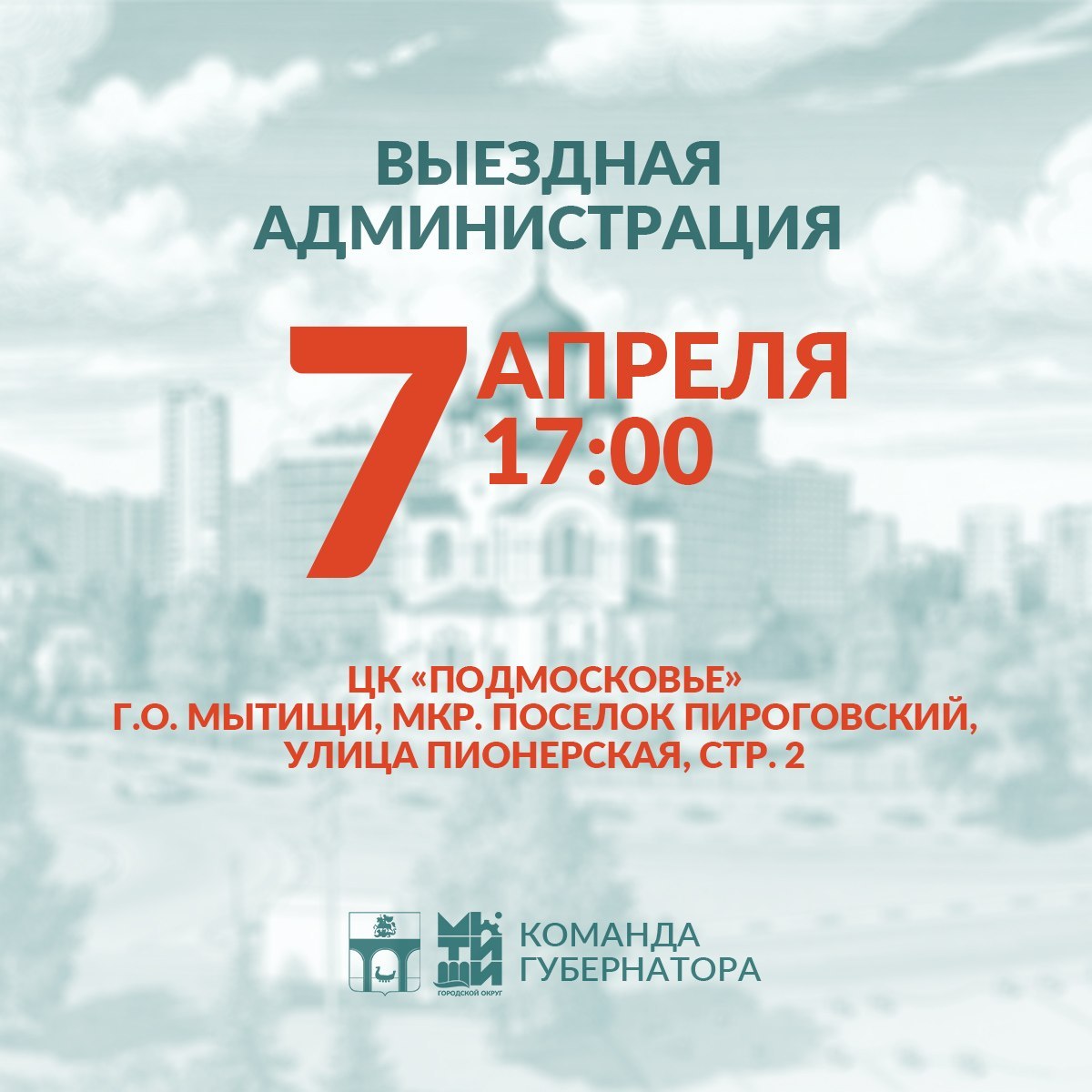 Приглашаю вас на встречу в формате «выездной администрации», которая состоится 7 апреля в микрорайоне Пироговский.