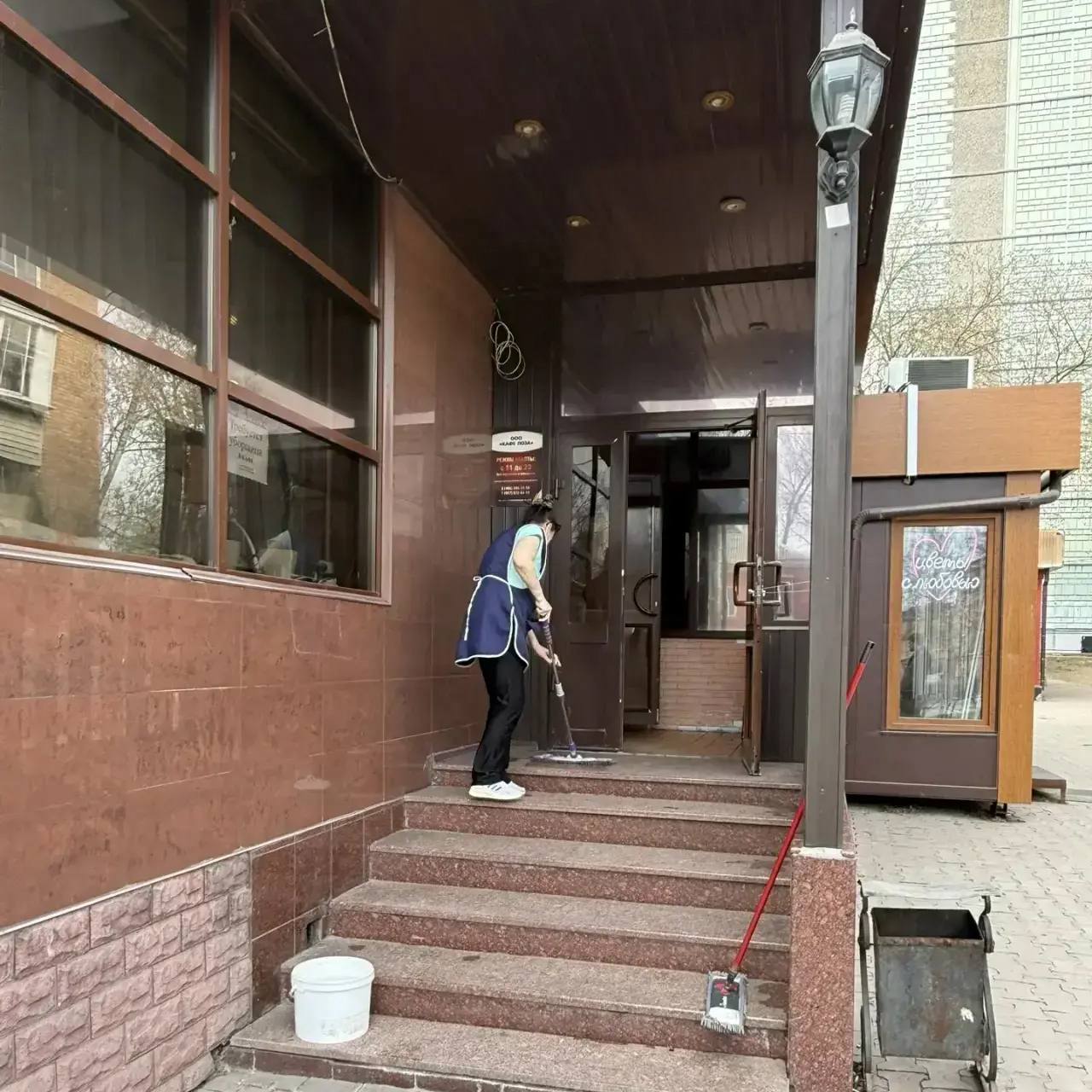 Предприниматели привели в порядок входные группы, очистили стены от рекламы и граффити, подмели и очистили газоны от зимней грязи: