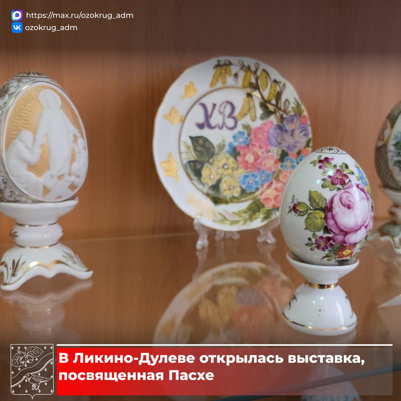 В Ликино-Дулёвском краеведческом музее открылась пасхальная выставка, объединившая более 60 экспонатов. Основу экспозиции составляют декоративные яйца. Часть из них расписана в стиле народных промыслов Дулева и Гжели.