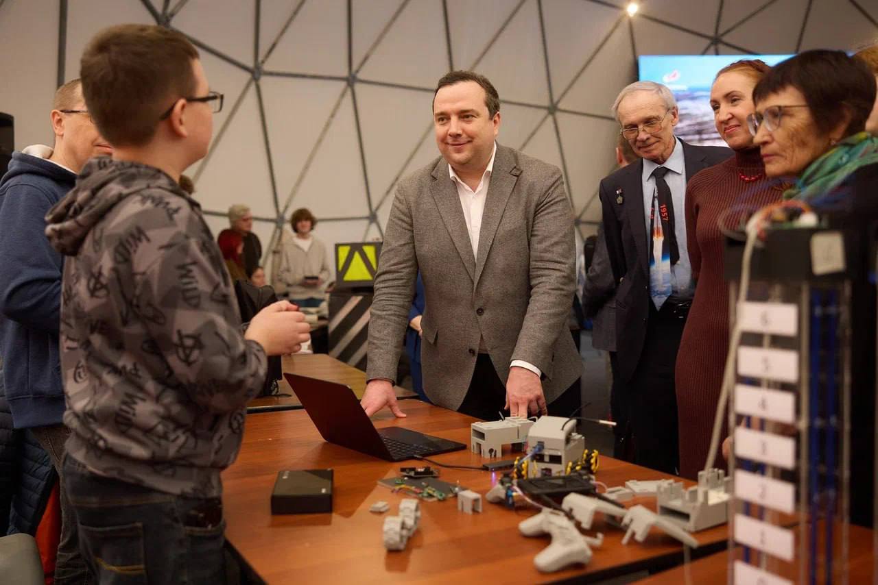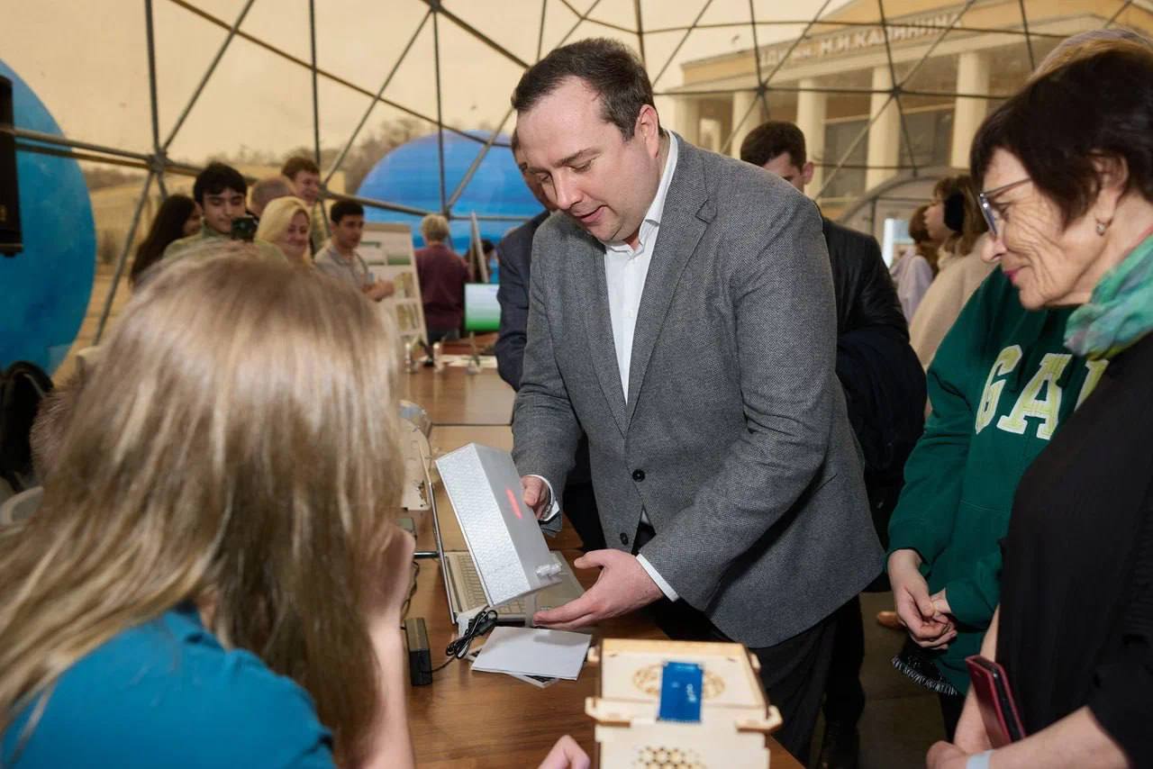 В космическом шатре в рамках Недели космоса ознакомился с проектами наших школьников.