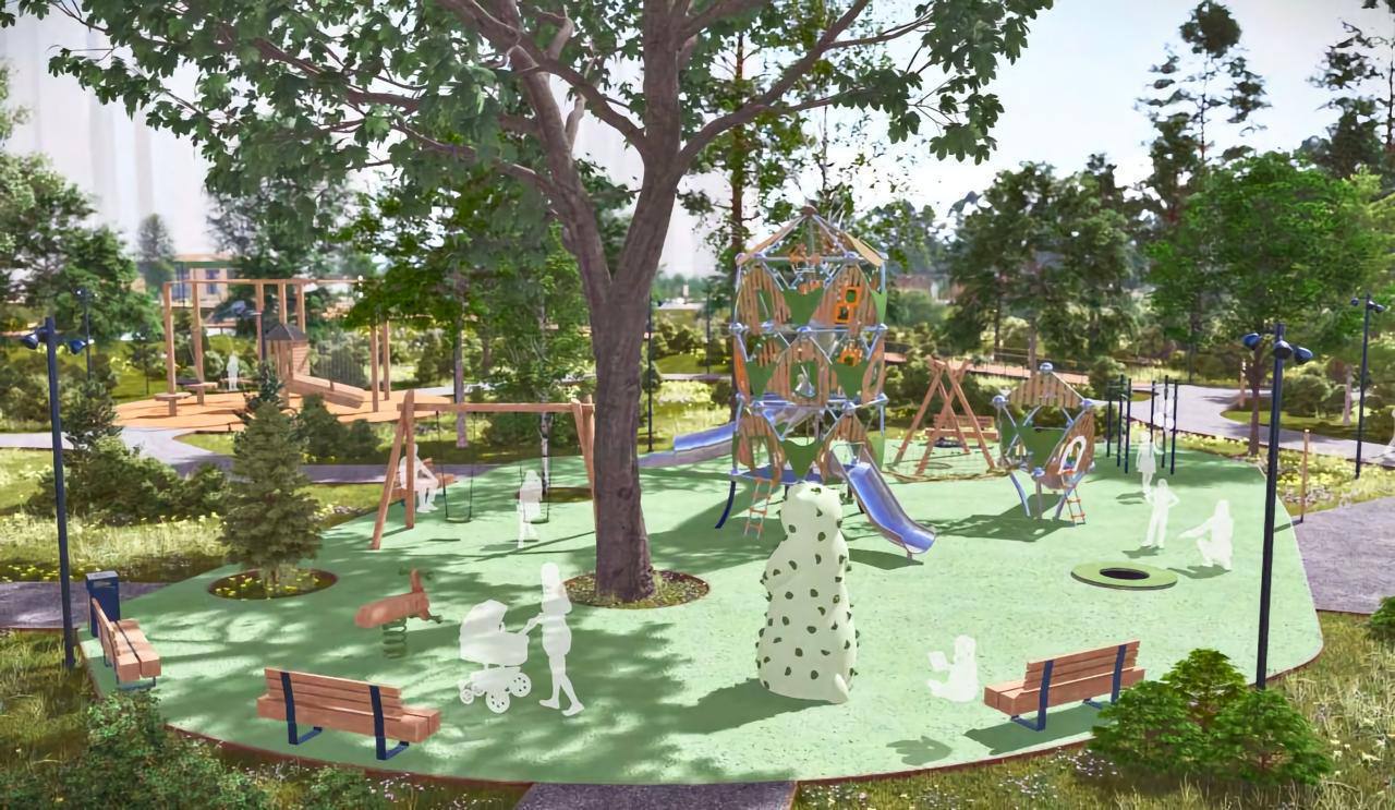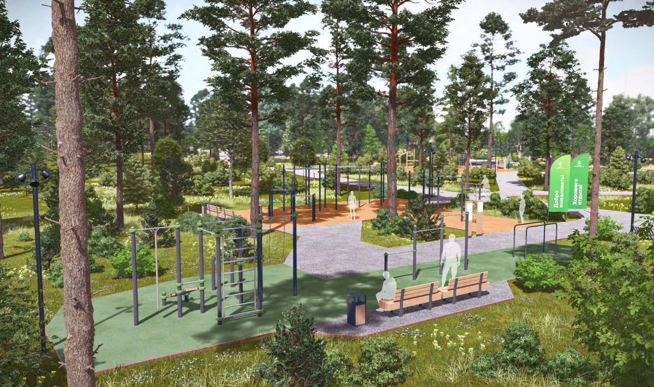 Особое внимание уделяется экологии: работы ведутся без вырубки здоровых деревьев. Пешеходные маршруты выполняются из гранитного отсева, деревянных настилов и других природных материалов, а асфальт появится только там, где это разрешено.