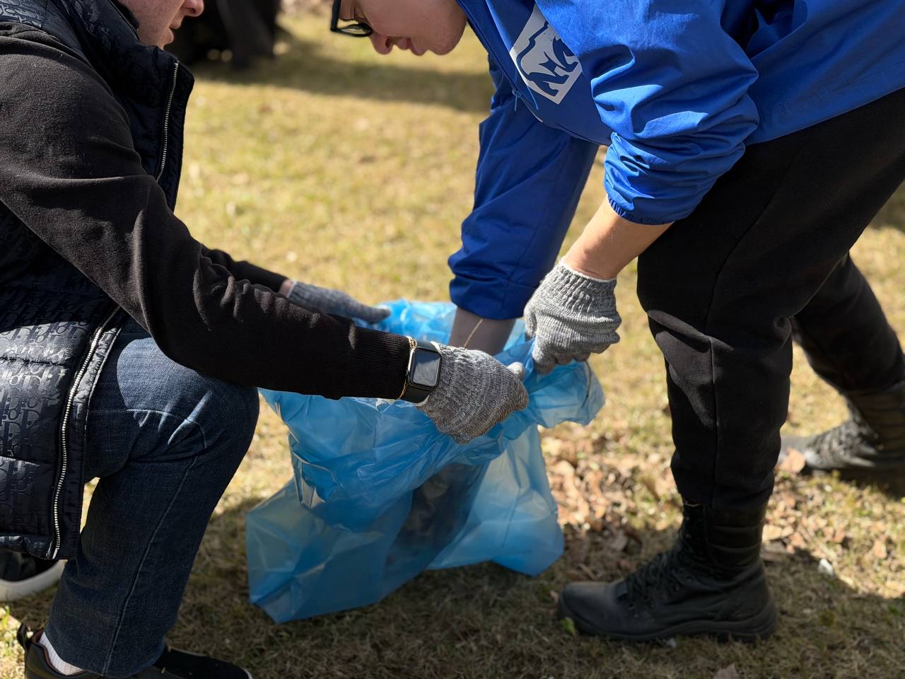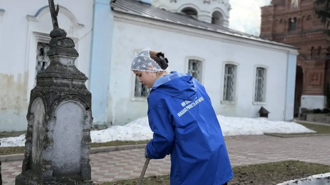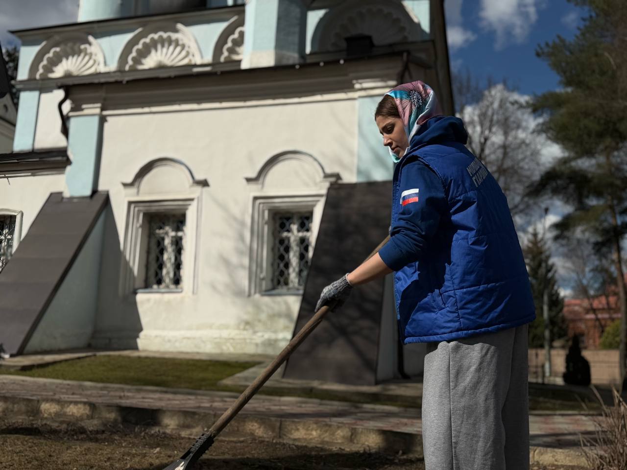 Активисты «Молодой Гвардии» провели субботник у Церкви Троицы Живоначальной перед Пасхой