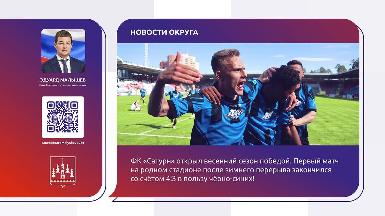 ФК «Сатурн» открыл весенний сезон победой. Первый матч на родном стадионе после зимнего перерыва закончился со счётом 4:3 в пользу чрно-синих!