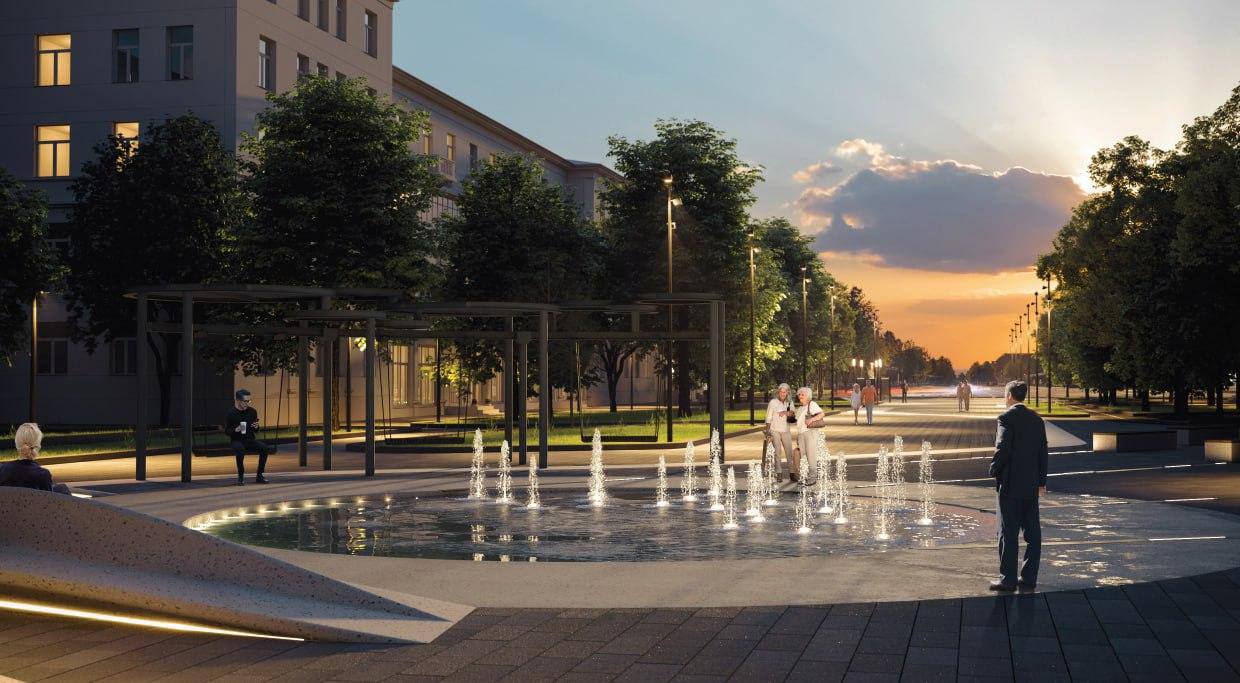 — пешеходную зону на проспекте Победы — создаём современное и удобное пространство с озеленением, освещением, видеонаблюдением и новым фонтаном;