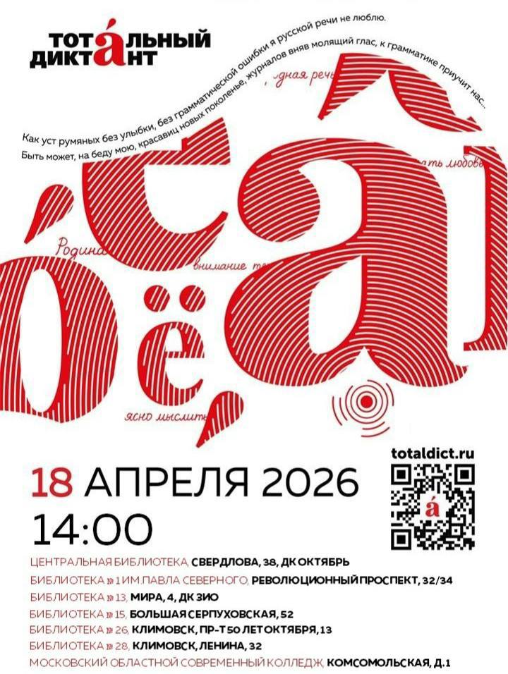 1 8 апреля жители округа напишут Тотальный диктант-2026