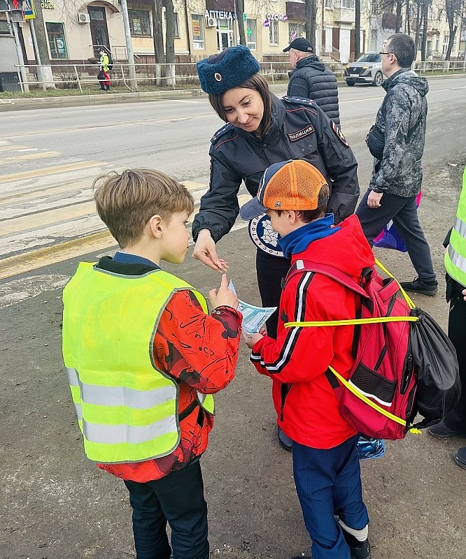 Сотрудники Госавтоинспекции и активисты отряда ЮИД «Перекрёсток» из лицея имени П.В. Стрельцова провели профилактическое мероприятие «Пешеходный переход»