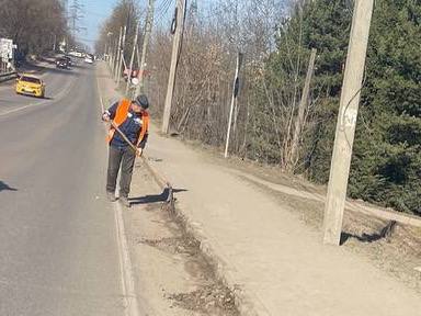 Уборка прибордюрной части от смета