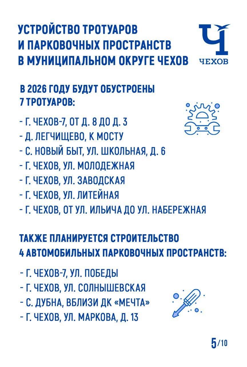 В муниципальном округе Чехов, также, как и во всем Подмосковье продолжается масштабная программа по созданию комфортной городской среды: