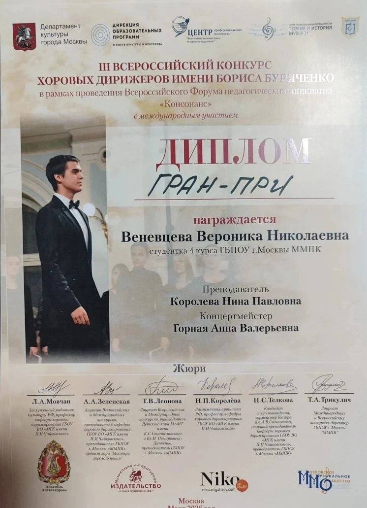 Преподаватель ДШИ № 3 Вероника Веневцева завоевала три почетные награды, включая Диплом «ГРАН-ПРИ», на III Всероссийском конкурсе хоровых дирижёров.