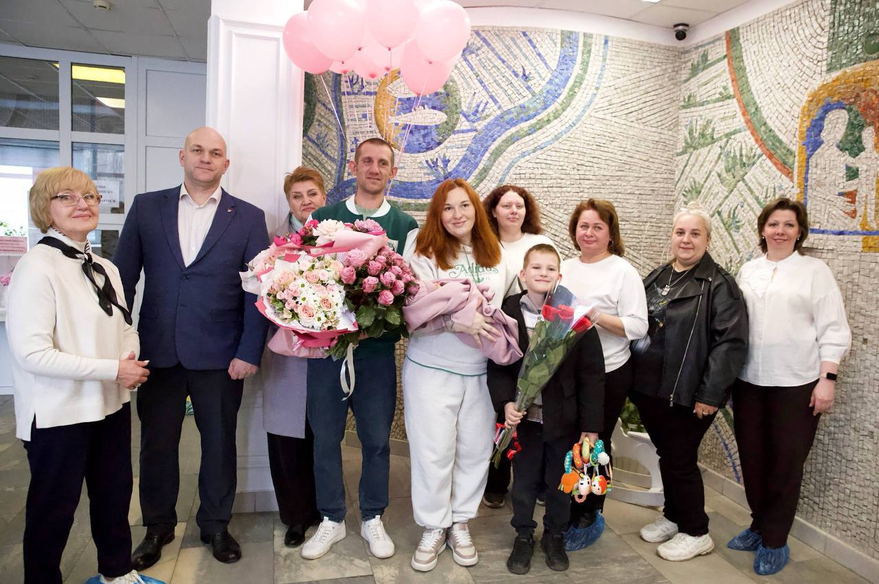 Поздравить счастливых родителей пришли сотрудники Центра поддержки участников СВО и их семей, отдела охраны здоровья граждан администрации Городского округа Подольск, представитель Ассоциации ветеранов СВО, а также филиала фонда «Защитники Отечества» – они вручили семье букеты цветов и набор для новорождённых.