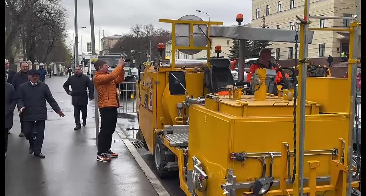 На открытой площадке перед зданием Министерства делегация ознакомилась с образцами дорожно-строительной, ремонтной и коммунальной техники, представленной в рамках уличной экспозиции, большая часть из них представлена Комплексом городского хозяйства Москвы.