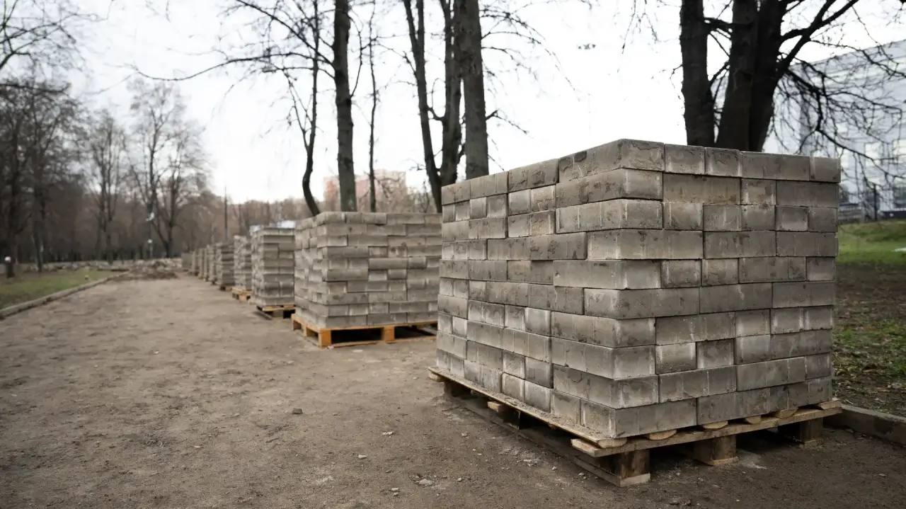 В настоящее время подрядной организацией завершены работы по установке строительного ограждения с тематическими баннерами и паспортом объекта, демонтажу малых архитектурных форм (скамеек, урн, информационных стендов). Ведется демонтаж плиточного покрытия. Уже демонтировано порядка 100 м погонных пешеходной сети.